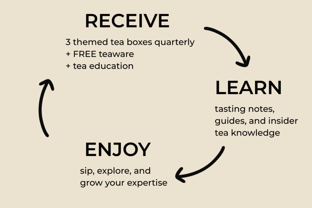 Besides discovering spectacular teas each month, you’ll get referral rewards, receive exclusive subscriber-only discounts on our teas and teaware, as well as get to connect with like-minded tea lovers all over the world.